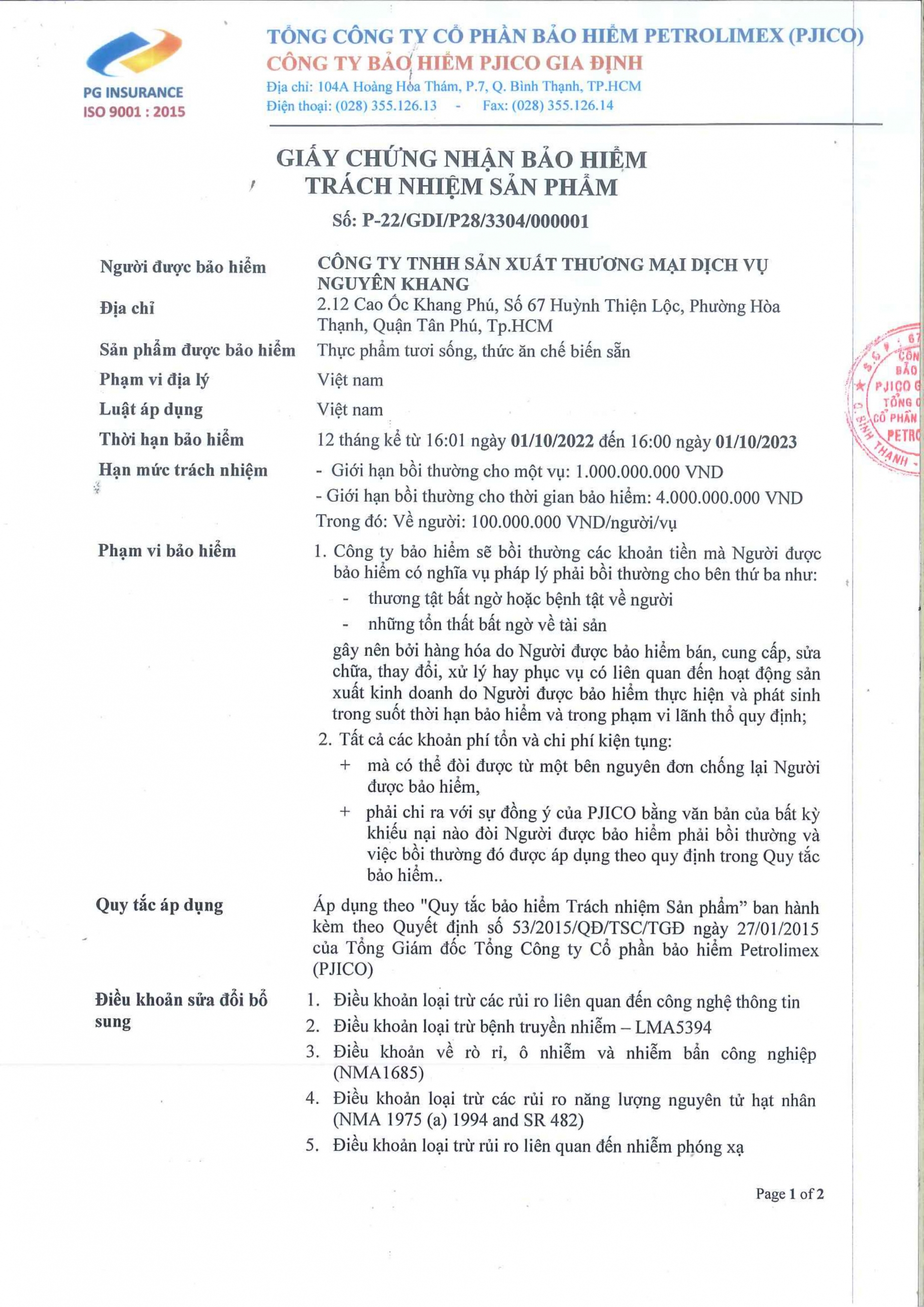 – Có đầy đủ chứng nhận: Giấy phép kinh doanh, giấy chứng nhận An Toàn vệ Sinh Thực Phẩm ISO 22000:2018, chứng nhận “Chuỗi thực phẩm an toàn”, toàn bộ thực phẩm có nguồn gốc rõ ràng theo tiêu chuẩ VietGAP.
